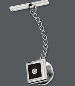 Stainless Steel Tie Tac, Diamond Accent and Black Enamel Tie Tac