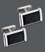 Stainless Steel Cuff Links, Diamond Accent and Black Enamel Cuff Links