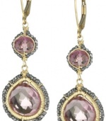 Dana Kellin Regal Double Drop Pink Quartz Edged in Dark Silver Hand -Cut Beads Drop Earrings