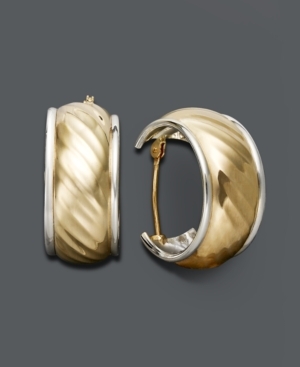 A look to transcend time. Hoops are an effortless addition to your collection. Crafted in 14k gold and sterling silver, surface features a chic, diamond-cut pattern. Approximate diameter: 3/4 inch.