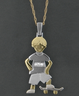 Skate your way to style with this radical skateboarder pendant. Featuring round-cut diamond accents set in 14k gold. Approximate length: 18 inches. Approximate drop: 1 inch. A Child is Forever™.