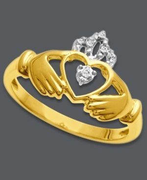 14k Gold Ring, Diamond Accent Claddagh Ring