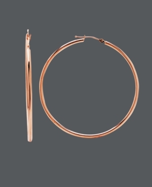 14k rose gold adds a modern hue to a timeless style. These up-to-date earrings feature a click back design and large-shaped hoop. Approximate diameter: 2 inches.