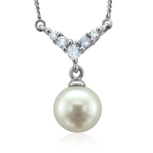 14k White Gold Natural Diamond and Pearl Necklace - 18"- Certificate of Authenticity