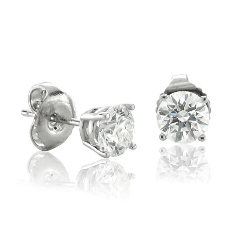 14k White Gold NATURAL Diamond Stud Earrings (HI, I3-I4, 0.60 carat)