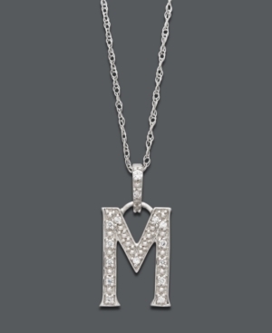 Spell it out in sparkle! This personalized initial charm necklace makes the perfect gift for Meredith or Michelle. Features sparkling, round-cut diamond accents. Setting and chain crafted in 14k white gold. Approximate length: 18 inches. Approximate drop: 1/2 inch.