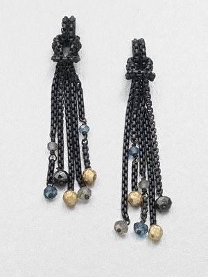 18K Gold & Semi-Precious Multi-Stone Accented Chain Tassel Earrings