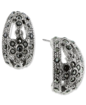 A stunning partial hoop design from 2028. This alluring design is dressed up with faux-marcasite stones. Crafted in hematite tone and silver tone mixed metal. Approximate length: 3/4 inch. Approximate width: 1/2 inch.