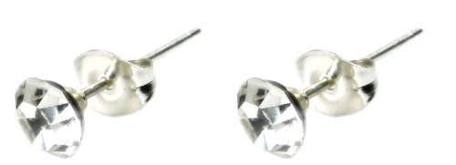 5MM White Round Solitaire Swarovski Crystal Elements Stud Earrings, 925 Sterling Silver Posts