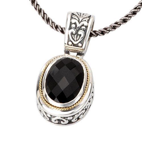 925 Silver & Faceted Onyx Oval Pendant with 18k Gold Accents