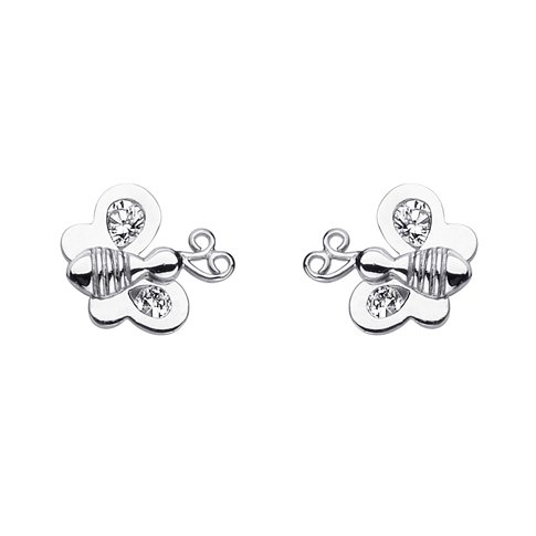 .925 Sterling Silver Rhodium Plated Butterfly CZ Stud Earrings with Screw-back for Children & Women