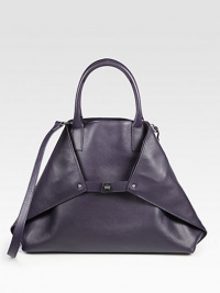 Top snap closure and versatile turn-lock buckle closure, can be tucked into bag for a tote silhouette