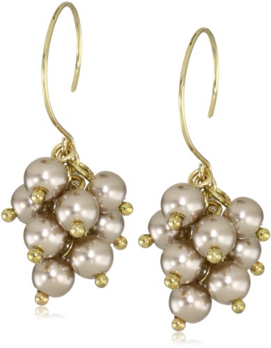 Anne Klein "Sorbet" Gold-Tone Champagne Pearl and Crystal Eurowire Drop Earrings