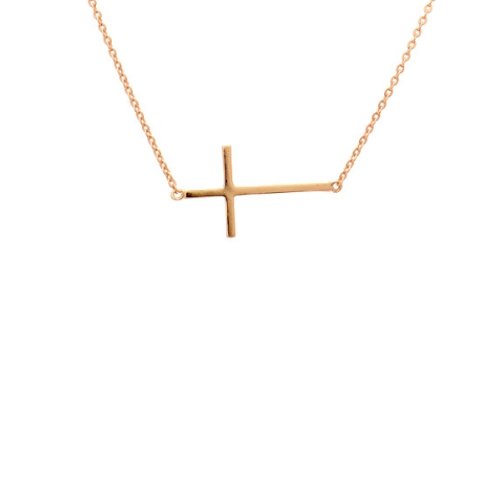 Apop nyc 14k Rose Gold Vermeil Horizontal Cross Necklace 16 - 17 inch