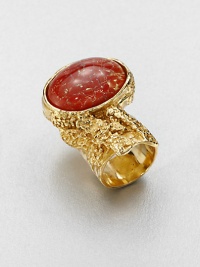 From the Arty Ovale Collection. A sleek oval stone of richly colored mottled glass in an intriguing sculptural setting with a vintage-inspired goldtone finish.