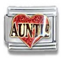 Auntie in Red hEart Italian Charm 18k Gold and Glitter Enamel Love Theme by Casa D'Oro