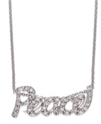 Find "peace" to be an elegant option. This necklace from B. Brilliant features a pendant with an inspiring message that sparkles with round-cut cubic zirconias. Crafted from sterling silver. Approximate length: 18 inches + 3-inch extender. Approximate drop length: 3/8 inch. Approximate drop width: 1 inch.