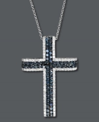 Proudly state your faith. Bella Bleu by Effy Collection's stunning cross pendant features the contrasting colors of round-cut white diamonds (1/3 ct. t.w.) and blue diamonds (1-1/6 ct. t.w.). Set in 14k white gold. Approximate length: 18 inches. Approximate drop length: 1-3/8 inches.