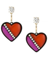 There's a lot to love in this pair of drop earrings from Betsey Johnson. Crafted from gold-tone mixed metal, the earrings feature multi-tone hearts adorned with glass crystal accents for a stylish touch. Approximate drop: 1 inch.