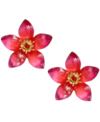 April showers bring May earrings. Betsey Johnson's flower stud earrings are made of gold tone mixed metal and adorned with crystal accents on top of vivid hot pink and red resin. Approximate diameter: 1-1/3 inches.