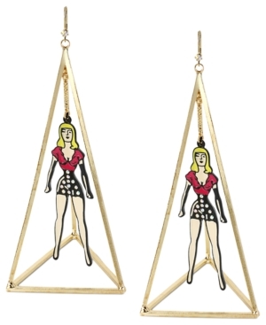 Betsey Johnson Earrings, Gold-Tone Multicolored Glass Crystal Girl and Triangle Drop Earrings