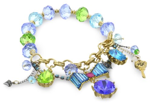 Betsey Johnson "Iconic Blue Lagoon" Crystal Bow Multi-Charm Half Stretch Bracelet