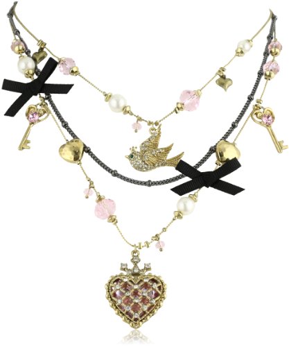 Betsey Johnson "Iconic Love Bird" Heart and Bird Illusion Necklace