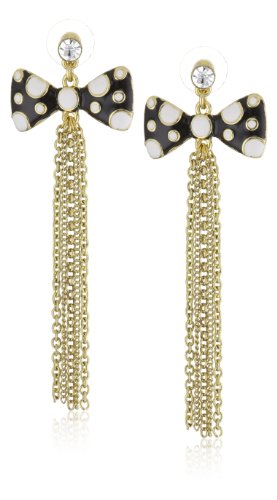 Betsey Johnson "Pretty Polka Dots" Polka Dot Bow Multi-Chain Linear Earrings