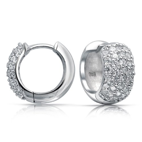 Bling Jewelry Cubic Zirconia Wide Pave Sterling Silver Huggie Hoop Earrings