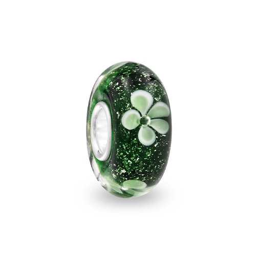 Bling Jewelry Sterling Green Clover Murano Glass Charm Bead Pandora Compatible