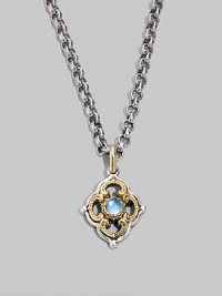 Chic little blossom accent in gleaming sterling silver and 18k gold, centered with a smooth cabochon blue topaz stone.