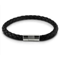 Braided Black Rubber and Stainless Steel Magnetic Mens Bracelet 6 mm 8 1/2 inches