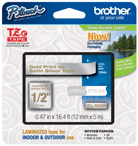 Brother Laminated Tape, 12mm (0.47 Inch), Gold on Silver (TZeMQ934)