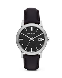 A leather strap lends a touch of luxury to this Burberry watch, crafted of stainless steel with a sleek, modern design.