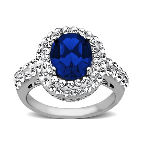 Carnevale Sterling Silver Blue Lady Di Ring with Swarovski Elements, Size 7