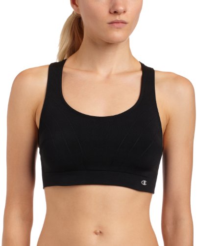 Champion Women's Double Dry Seamless Shiny Sports Bra, Black, Large