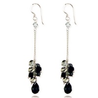 Charming Black Swarovski Crystal Sterling Silver Drop Earrings