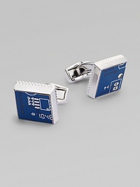 These cufflinks are uniquely crafted from recycled electronic printed circuit boards with highly polished outer case and signature diamond pattern.