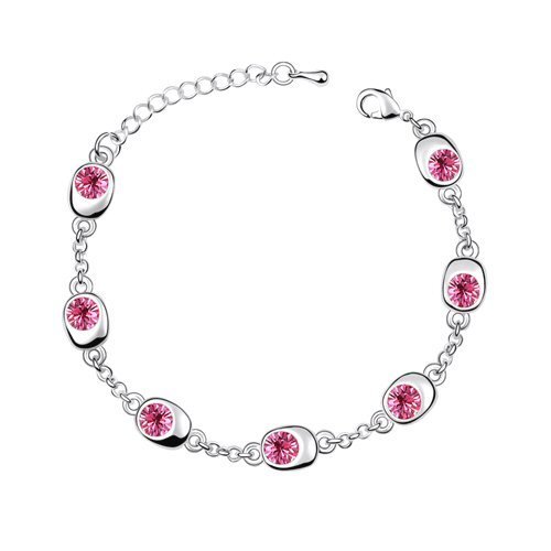 Contessa Bella Fancy Genuine 18k White Gold Plated Round Pink Swarovski Austrian Crystal Elements Charm Women Bracelet Elegant Silver Color Crystal Fashion Jewelry