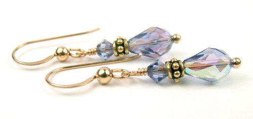 Damali 14K Gold December Tanzanite Swarovski Crystal Elements Earrings - 1 Inch