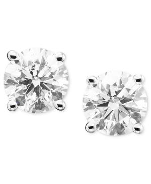 Every girl's best friend - add a little sparkle with sophisticated studs. Earrings feature round-cut diamond (1-1/2 ct. t.w.) in a polished 18k white gold setting. IGI Certified diamonds.