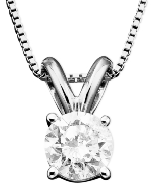 Perfectly pristine, this diamond necklace provides lasting beauty. Featuring a round-cut diamond (1/2 ct. t.w.) set in 14k white gold. Approximate length: 18 inches. Approximate drop: 3/4 inch.