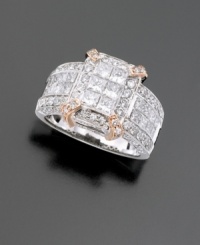 Princess-cut and round-cut diamonds (3 ct. t.w.) combine for a boldly luxurious look. Diamond ring in 14k white gold with 14k rose gold accents. Size 7.