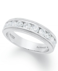 Celebrate years of wedded bliss. This stunning milgrain anniversary band features a row of certified round-cut diamonds (1 ct. t.w.) in 14k white gold.