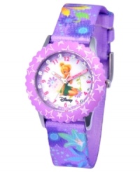 Disney Watch, Kid's Glitz Tinker Bell Time Teacher Purple Printed Nylon Strap 31mm W000277