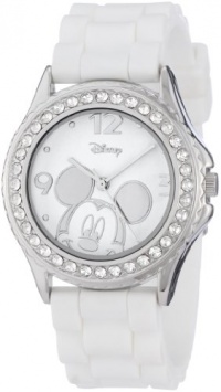 Disney Women's MK1093 Rhinestone Accent Mickey Mouse White Rubber Strap Watch