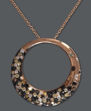A chic confetti-inspired circle of color. EFFY Collection's dazzling open-cut pendant features round-cut white diamonds (1/6 ct. t.w.), champagne diamonds (1/2 ct. t.w.) and black diamonds (3/8 ct. t.w.). Setting and chain crafted in 14k rose gold. Approximate length: 18 inches. Approximate drop: 1 inch.