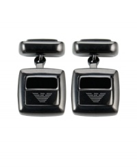 Add dimension to your favorite work shirt with shapely cuff links. Square black ceramic features the company logo on the surface. Approximate diameter: 1-1/4 inches.