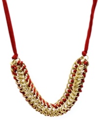 Red hot and totally fabulous. FALCHI by Falchi's crimson frontal necklace combines an intricate woven design with bright red suede. Mesh accents and clasp crafted in gold tone mixed metal. Approximate length: 36 inches.