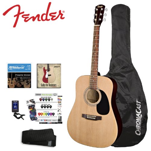 Fender Natural Acoustic Guitar Kit - Includes: Strings, Strap, Tuner, ChromaCast Guitar bag and GoDpsMusic Pick Sampler